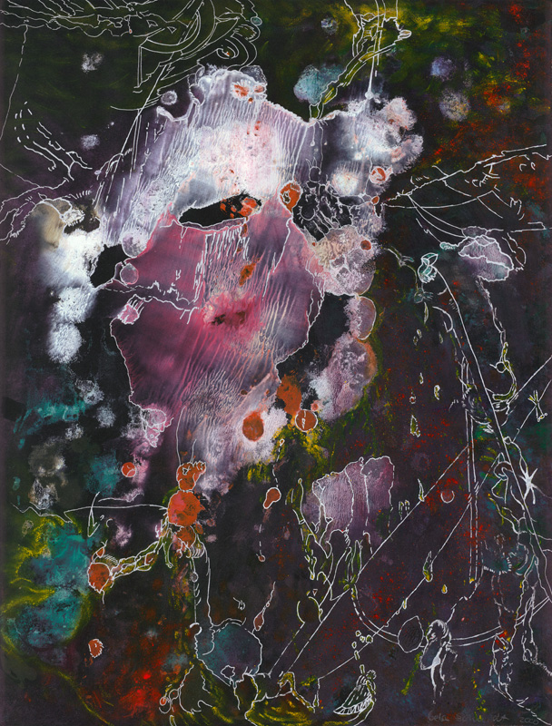 Die Neo-DADA-Arbeiten von Gela basieren zumeist auf der Methode der Décalcomanie. Dies ist eine Abklatschtechnik, welche schon von Max Ernst verwendet wurde. Bei der Verwendung dieser Methode mischt sich während des künstlerischen Prozesses das gelenkte Arbeiten mit dem intuitiven, freien und kreativen Schaffen.